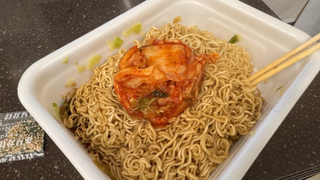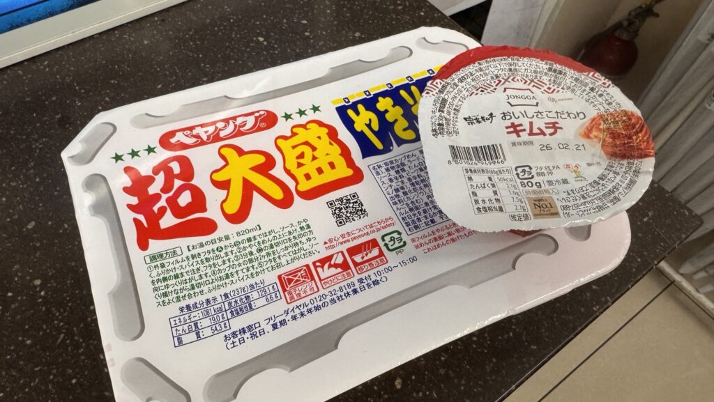 今日はペヤングにキムチをぶち込む